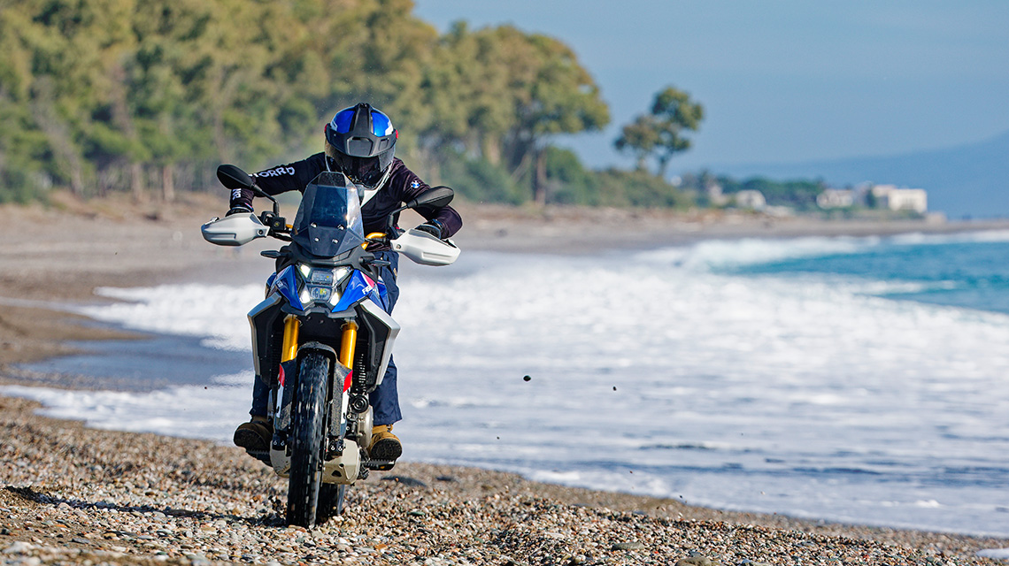 Mit einer Sitzhöhe von 845 mm und einem Leergewicht von 178 kg ist die BMW F 450 GS sowohl für Anfänger als auch für erfahrene Fahrer gut geeignet. Das Tankvolumen beträgt 14 l, davon rund 2,5 l Reserve. Die Zuladung liegt bei insgesamt 355 kg, was das Modell zu einer praktischen Wahl für längere Touren und Abenteuerfahrten macht.