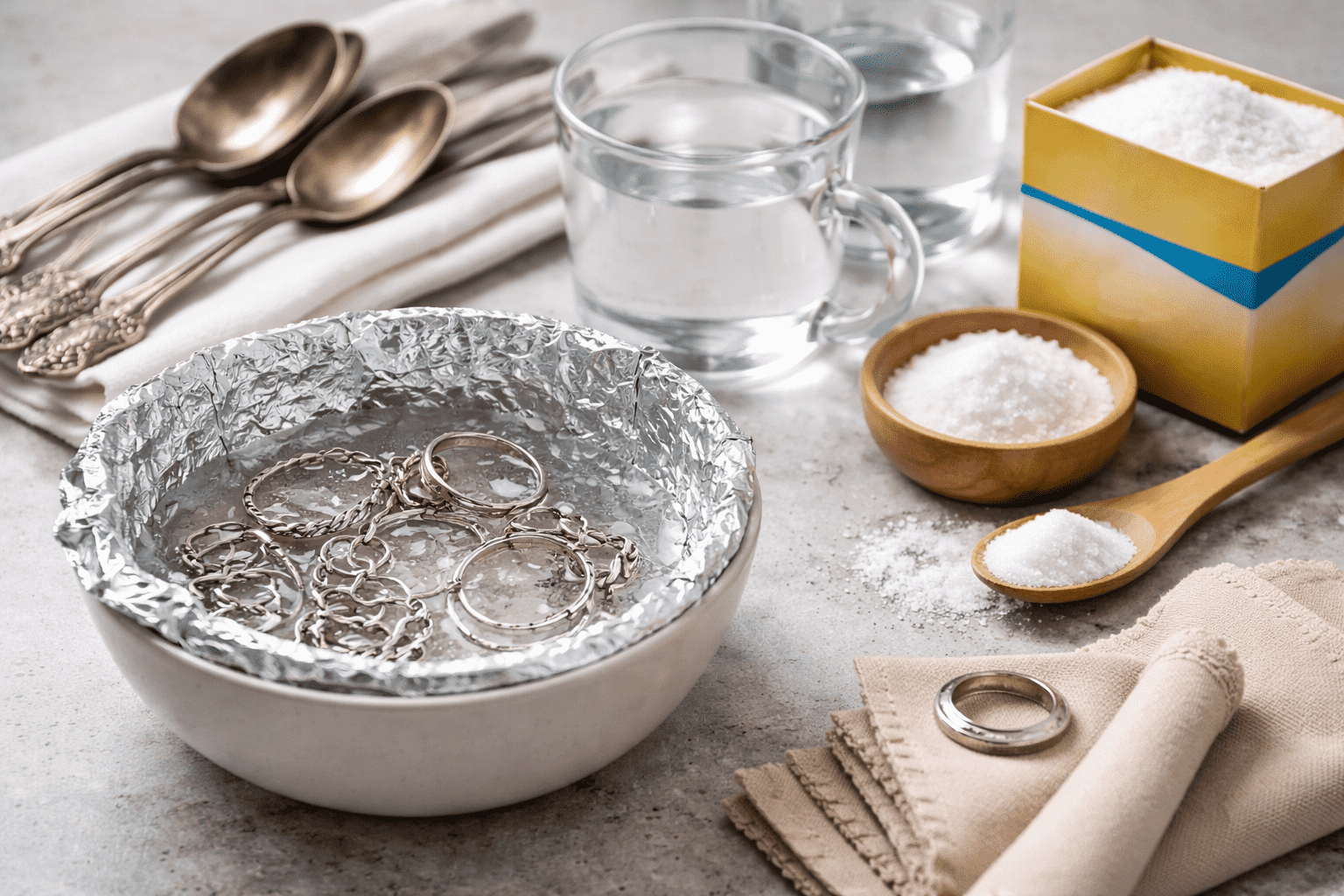 Schritt-für-Schritt-Anleitung: Silber mit Folie und Salz reinigen